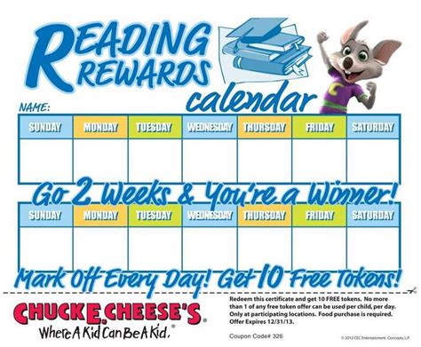 Kids Earn Free Tokens w/ Chuck E. Cheese 2014 Summer Reading Program