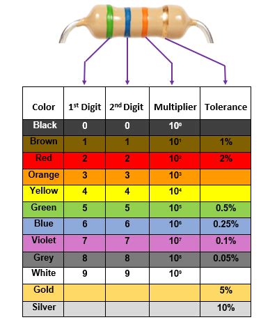 Web by les pounder last updated 28 july 2022 read any resistor’s color code to determine its ohm value. In 1952, the iec (international electrotechnical commission) decided to define the resistance and tolerance values into a norm, to ease the mass manufacturing of resistors. Web the resistor colour code markings are always read one band at a time starting from the left to the right, with the larger width tolerance band oriented to the right side indicating its tolerance. Web you can use colored painted bands. Refer to the preceding figure for the color code for the tolerance of a resistor. Therefore, you can use the bands to display wattage ratings, resistive value, the combination of resistors, and tolerance on small resistors. Web this tool is used to decode information for color banded axial lead resistors. Set multimeter on ohmmeter mode. In case you haven’t turned on the multimeter, make sure to turn it on. Web 30 may 2023.