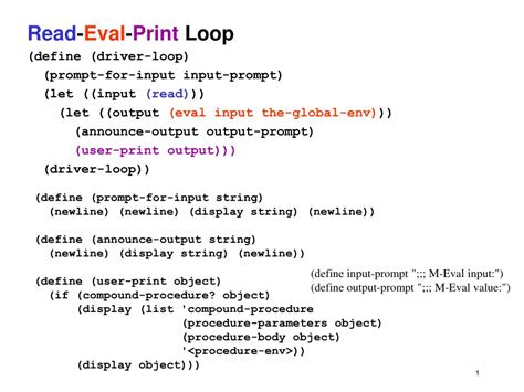 Read Eval Print Loop. The readfunction accepts an expression from the user, and parsesit into a data structure in memory. Eval () is used to evaluate expression, and print is a statement.