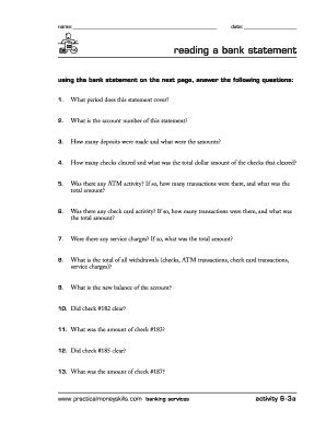 Reading A Bank Statement Answer Key. Using the bank statement on the page above, answer the following questions: What period does this statement cover?